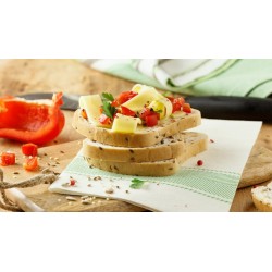 Suave y sabroso pan blanco en rebanadas con semillas de lino, mijo y pipas de girasol. Disfruta de este tierno pan con cereales directamente del paquete o tostado.