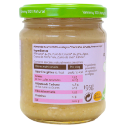 INGREDIENTES: Puré de Manzana* 43,6% Agua, Puré de Ciruela* 24,50%, Copos de Avena* 5,45%, Canela*.
