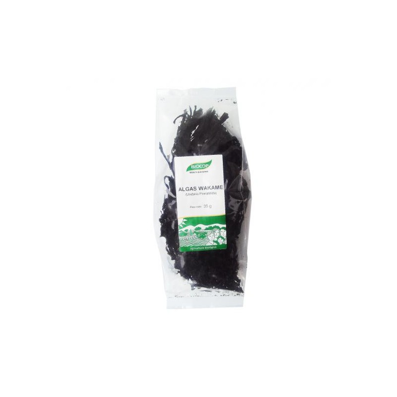 100 gr DE ALGA WAKAME APORTAN: *12% de hierro de la CDR. *15% de calcio de la CDR. (MÁS QUE UN VASO DE LECHE) *27% de magnesio de la CDR. *70% de manganeso de la CDR. *Fósforo. *vitaminas del grupo B *Vitaminas A y C. ENVASE : 35 GR.