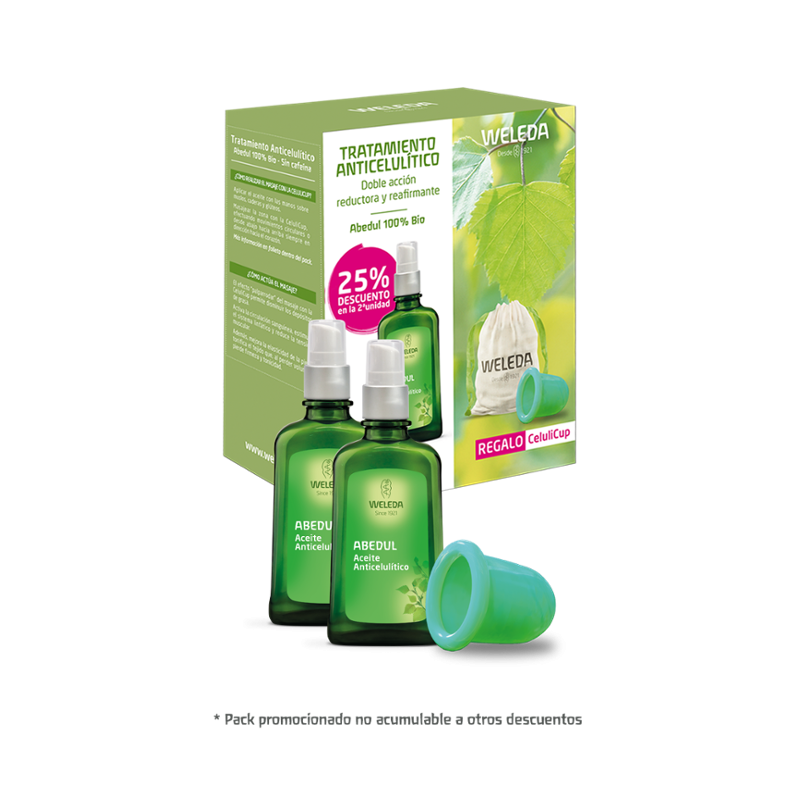 EL PACK ANTICELULÍTICO DE ABEDUL CONTIENE: * 2 ENVASES DE ACEITE DE ABEDUL 100 ml. *1 EXFOLIANTE CORPORAL DE ABEDUL 20 ml. * MASAJEADOR DE MADERA *GUIA PARA EL CUIDADO DE LA CELULITIS.