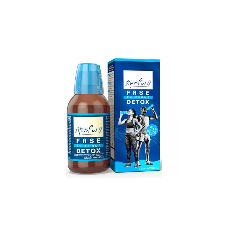 Tongil Estado Puro Fase en forma Detox es un complemento alimenticio líquido a base de extractos concentrados de plantas, magnesio y agua de coco.